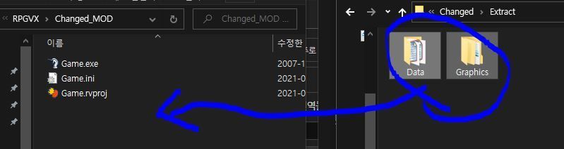 그리고 기존에 있는 Graphics, Data폴더를 삭제 후,