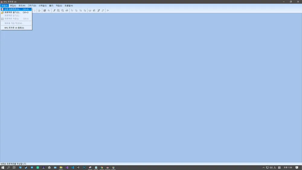그 후, RPG VX에 들어가서 신규프로젝트를 만들어서 그 프로젝트 경로에 들어가야돼.